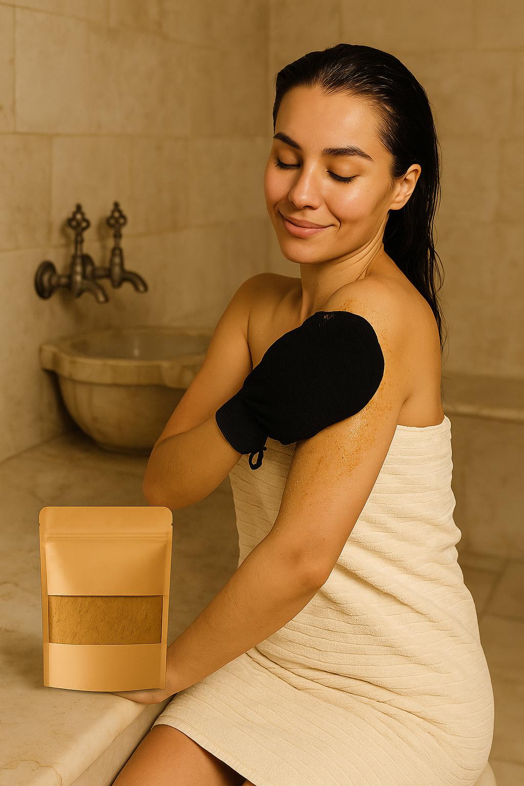 Pack Hammam Marocain Tabrima – Poudre 100g + Gant Kessa + Pierre Ponce en Argile